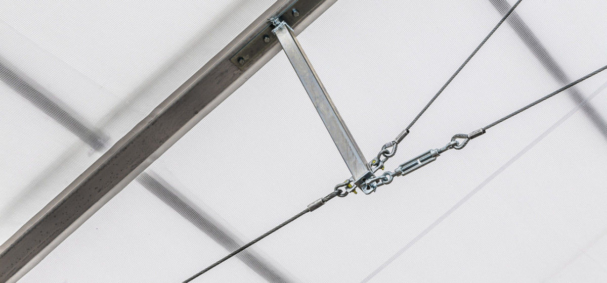 Naše konstrukcije, ki jih je razvil izkušen tehnološki oddelek, zagotavljajo prosto drsenje snega s strehe šotorske hale. Ta funkcionalnost je mogoča zaradi izvedbe naklona strehe nad 40-odstotkov. Poleg tega,lahko ponudimo tudi tehnično rešitev napihljive strehe, v katero se preko črpalke vpihuje zrak in s tem zagotavljamo zračno izolacijo med dvema ponjavama. Z vpihovanjem toplega zraga zagotovimo toplotno izolacijo strehe in drsenja snega s strehe.