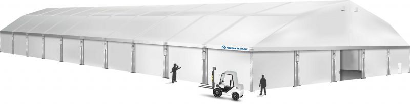 Individualen dizajn, hiter čas postavitve, možnost spremembe lokacije, sezonska/začasna postavitev, nizki stroški obratovanja, odpornost na vremenske razmere....To so le nekatere prednosti naših industrijskih šotorov. Protan Elmark industrijski šotori so narejeni iz najkvalitetnejših materialov, ki zagotavljajo učinkovito zaščito pred dežjem, snegom in vetrom. Odvisno od posameznih potreb in lokacije postavitve industrijske hale, konstrukcijo lahko ojačamo s trapeznimi ali izolativnimi paneli. Preverite naš cenik!